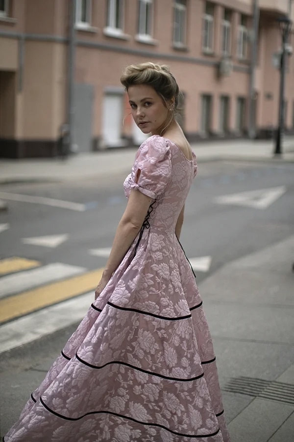 Мы сшили это платье с характером, вдохновившись танцовщицами страстного Фламенко. Фактурная ткань с рельефными розами - снаружи, шелковистый штапель - внутри. Платье застёгивается на молнию на спинке, а по бокам лифа - шнуровка. Она сделана таким образом, что Вы можете смоделировать лиф платья точно под свой силуэт, подчеркнув всё самое прекрасное.